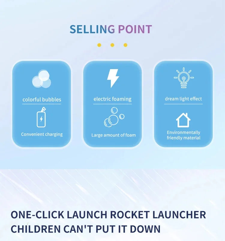 Turn playtime into a bubble festival with the Bazooka Bubble Gun! Featuring a powerful 69-hole design, it blasts out hundreds of bubbles in seconds with just one click.